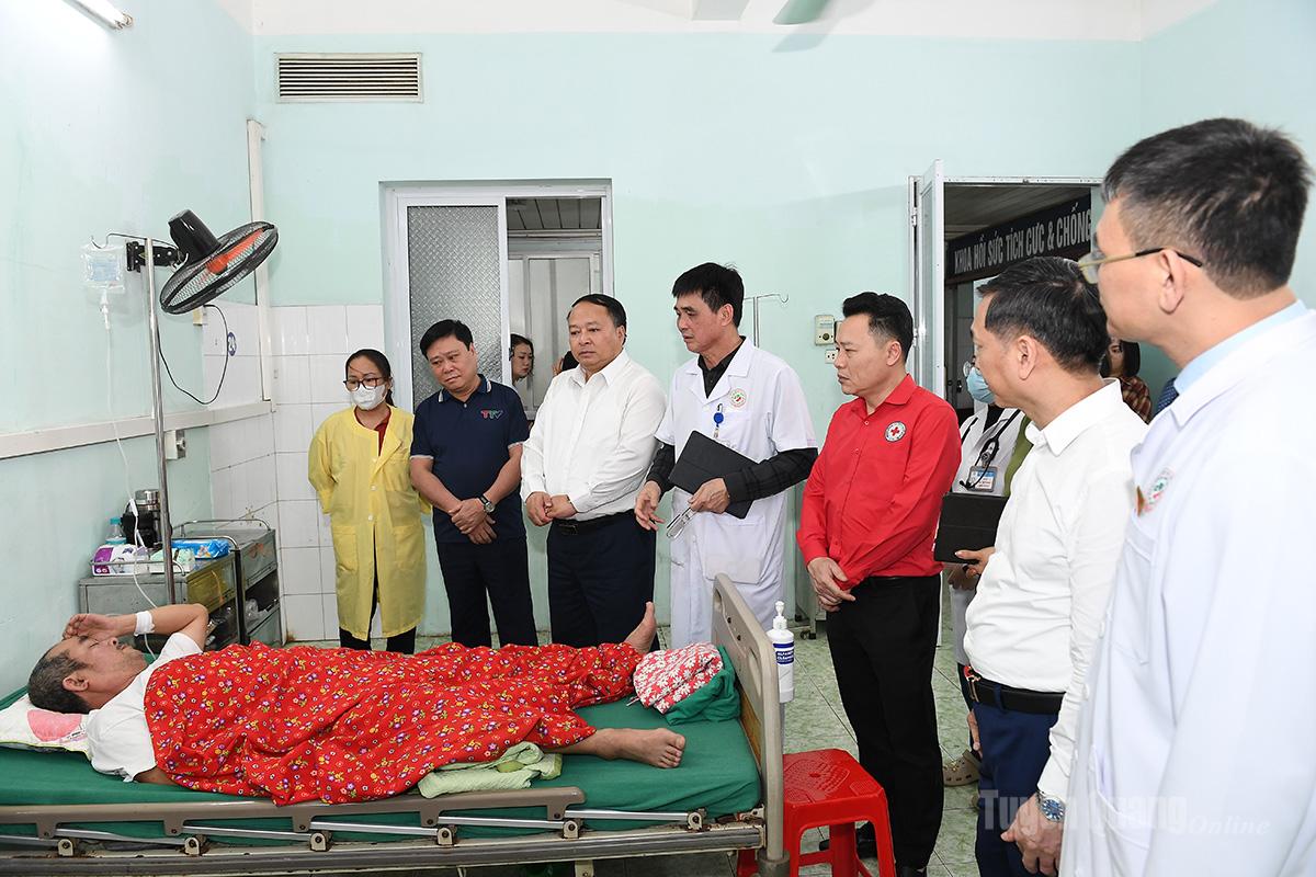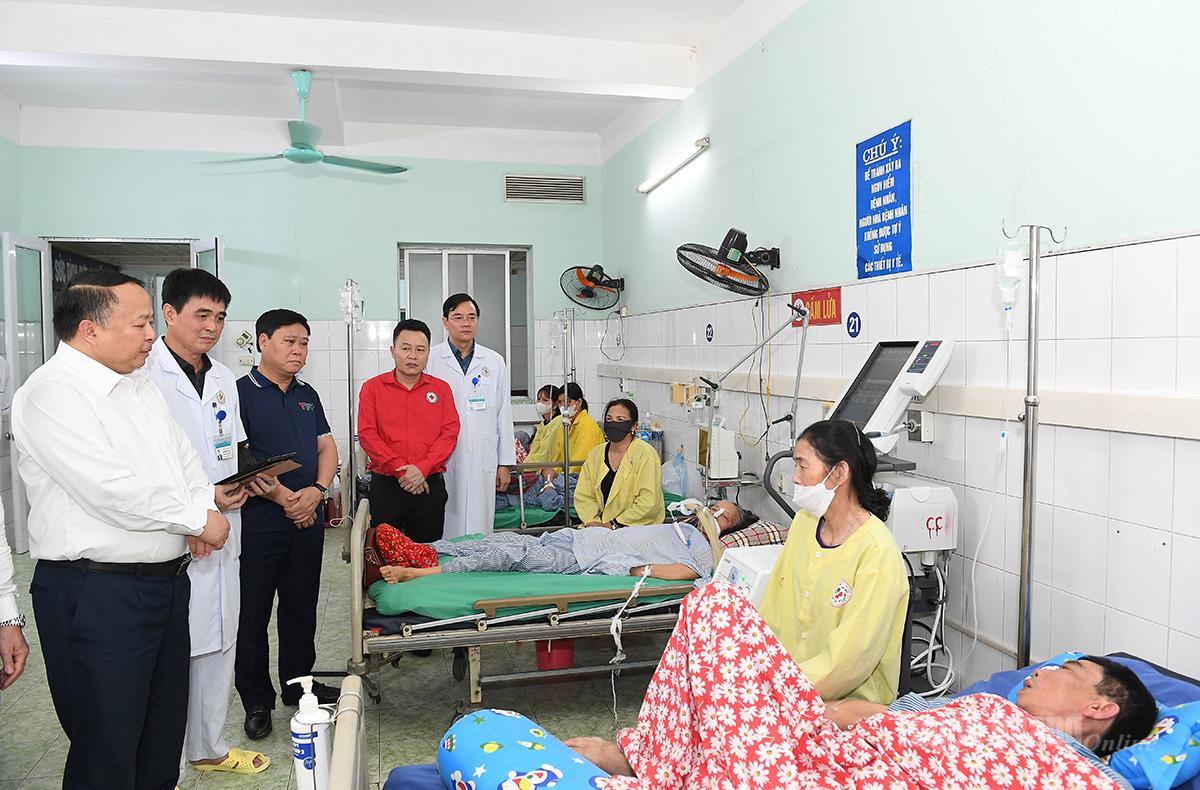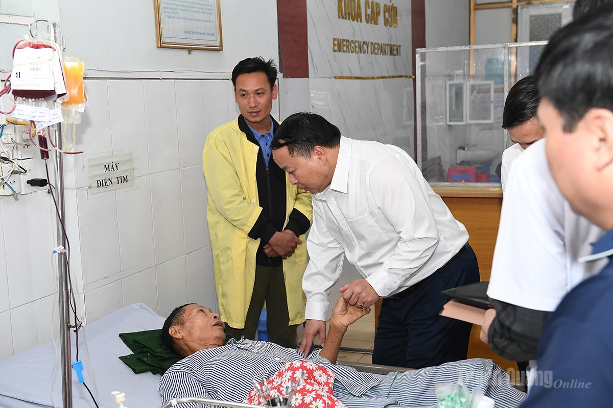Chủ tịch UBND tỉnh Phan Huy Ngọc thăm hỏi, động viên bệnh nhân đang điều trị tại khoa Cấp cứu, Bệnh viện Đa khoa tỉnh