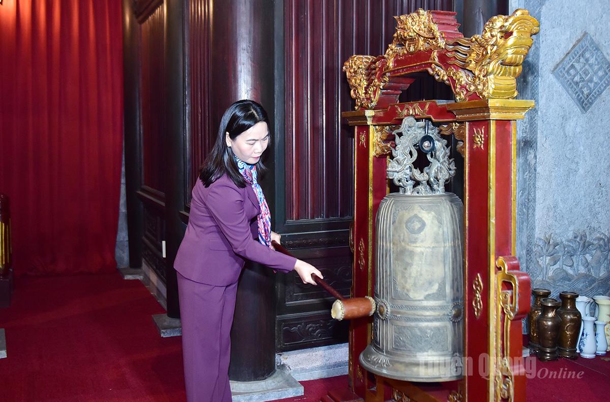 Đồng chí Phó Bí thư Thường trực Đảng ủy UBND tỉnh Nông Thị Bích Huệ thỉnh chuông khai lễ.