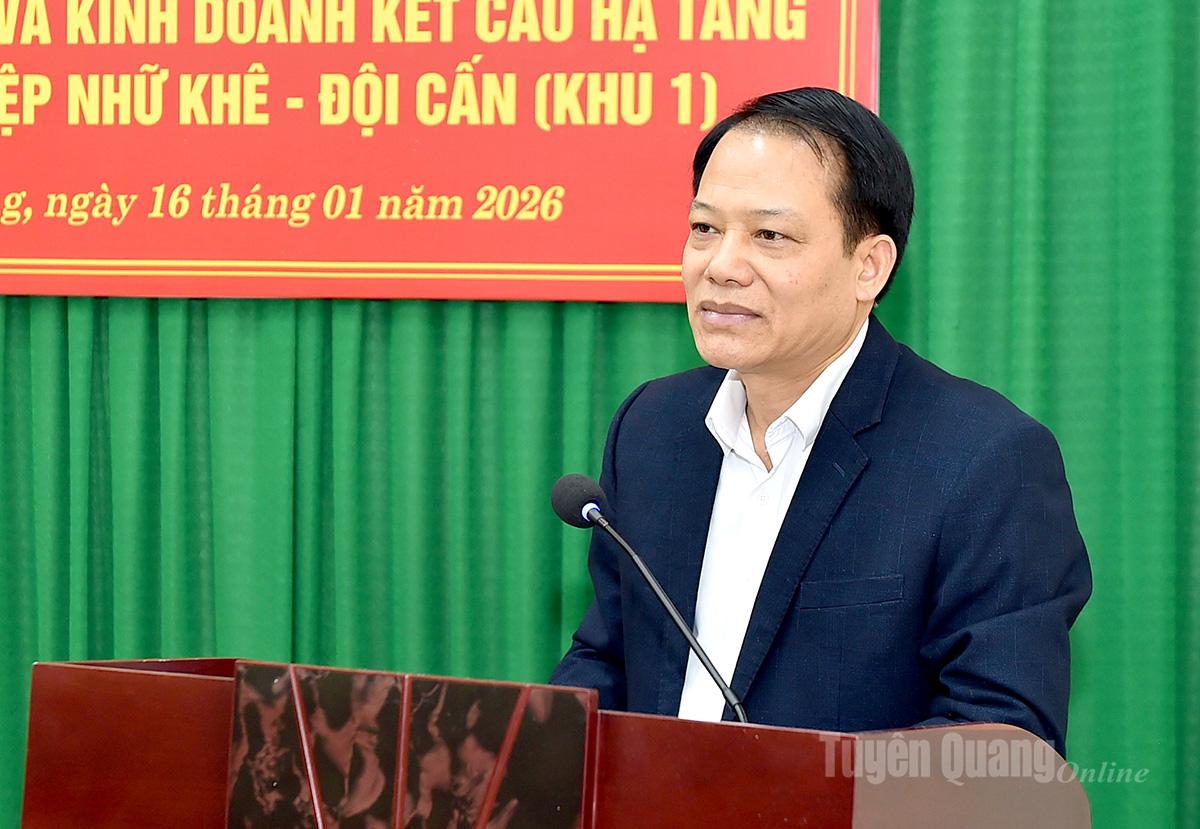 Tại hội nghị, Ban Quản lý các khu công nghiệp và khu kinh tế tỉnh đã công bố Quyết định số 86/QĐ-UBND ngày 14/01/2026 của UBND tỉnh Tuyên Quang về việc chấp thuận chủ trương đầu tư, đồng thời chấp thuận nhà đầu tư; trao Giấy chứng nhận đăng ký đầu tư cho Công ty TNHH Xây dựng Tự Lập thực hiện Dự án đầu tư xây dựng và kinh doanh kết cấu hạ tầng Khu công nghiệp Nhữ Khê – Đội Cấn (Khu 1). Dự án Đầu tư xây dựng và kinh doanh kết cấu hạ tầng Khu công nghiệp Nhữ Khê – Đội Cấn (Khu 1) có quy mô sử dụng đất khoảng 75 ha, được triển khai tại phường Bình Thuận, tỉnh Tuyên Quang. Tổng vốn đầu tư của dự án là 894,94 tỷ đồng, trong đó vốn góp của nhà đầu tư là 134,94 tỷ đồng, còn lại là vốn huy động. Thời hạn hoạt động của dự án là 50 năm kể từ ngày được Nhà nước bàn giao đất.