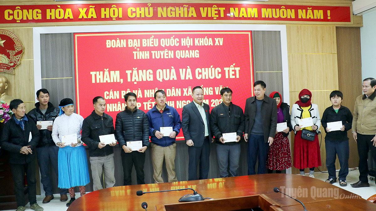 Đồng chí Tráng A Dương đã trao mỗi xã 20 suất quà Tết cho hộ nghèo, gia đình chính sách, hộ có hoàn cảnh khó khăn và đoàn cũng trao quà Tết cho cấp ủy, chính quyền 3 xã. Nhân dịp chuẩn bị đón Tết cổ truyền của dân tộc, đồng chí đã hỏi thăm sức khoẻ, đời sống người dân, gửi những lời chúc Tết đầm ấm, tốt đẹp đến toàn thể gia đình người dân trên địa bàn xã.