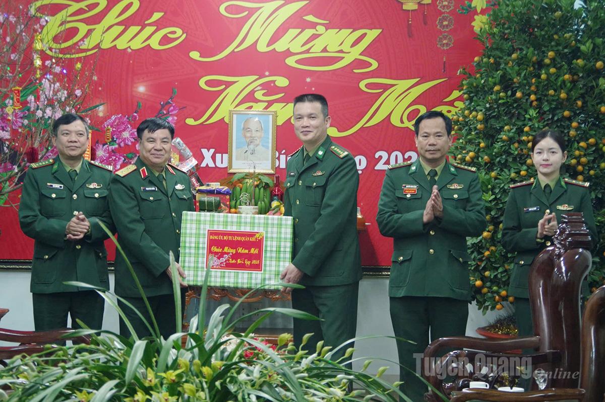 Tại các đơn vị, đoàn công tác đã nghe chỉ huy báo cáo kết quả thực hiện nhiệm vụ quân sự, quốc phòng; công tác duy trì chế độ trực SSCĐ, nắm chắc tình hình địa bàn, biên giới; sẵn sàng xử trí các tình huống không để bị động, bất ngờ; đồng thời kiểm tra công tác bảo đảm hậu cần, kỹ thuật, tài chính và việc chăm lo đời sống vật chất, tinh thần cho cán bộ, chiến sĩ trong dịp Tết Nguyên đán.