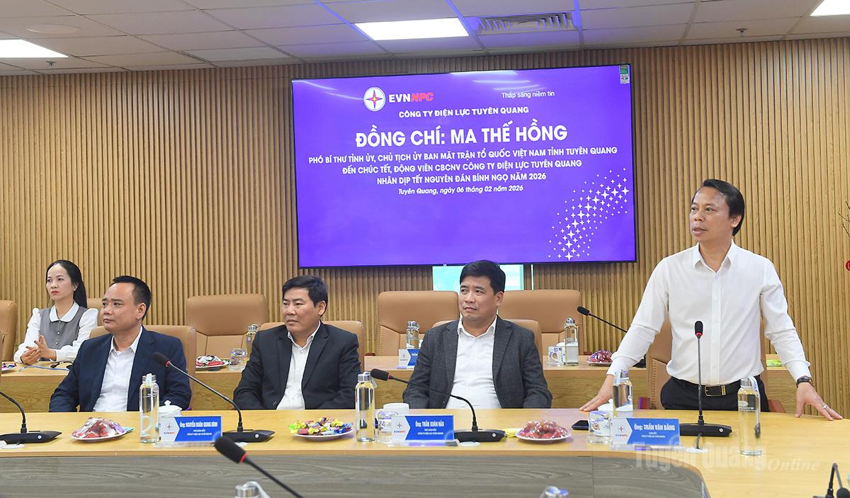 Phó Bí thư Tỉnh ủy, Chủ tịch Ủy ban MTTQ Việt Nam tỉnh Ma Thế Hồng phát biểu tại buổi thăm, chúc Tết tại Công ty Điện lực Tuyên Quang.