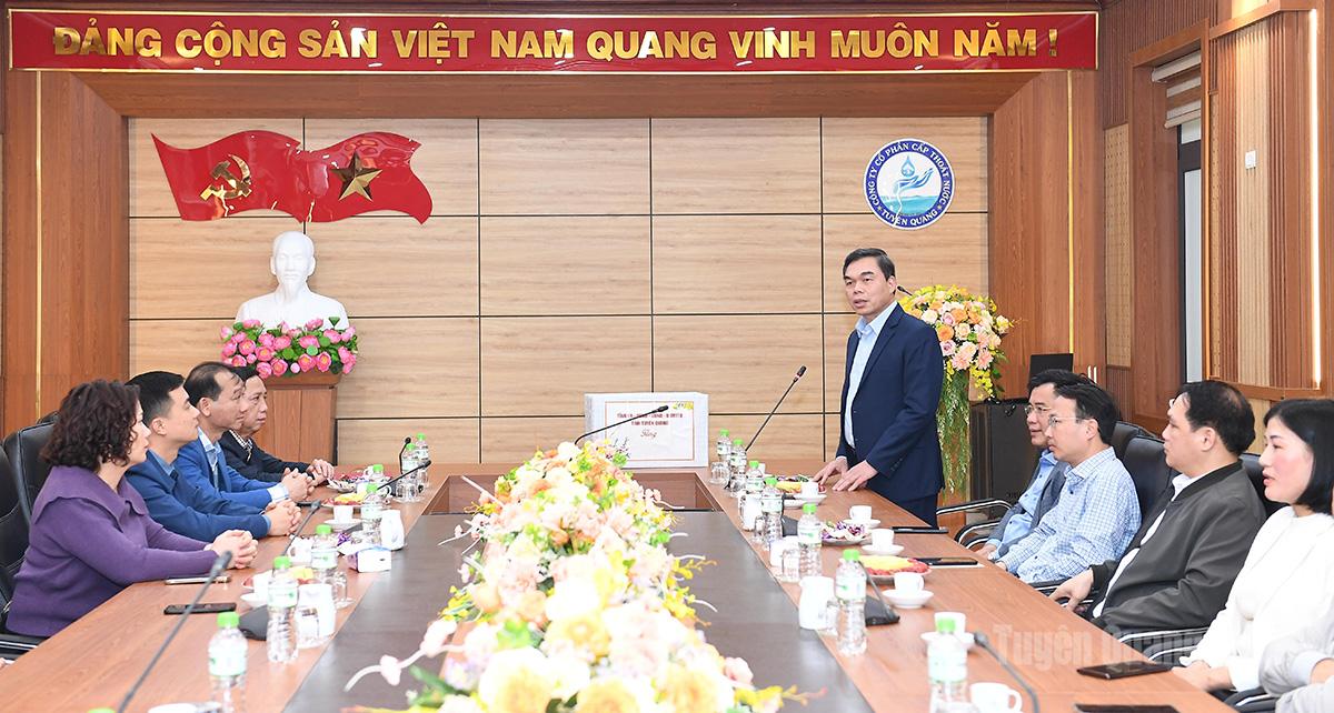 Đồng chí đề nghị các đơn vị tiếp tục đổi mới, nâng cao chất lượng hoạt động sản xuất, kinh doanh. Trong đó, Công ty Điện lực Tuyên Quang tiếp tục quan tâm quy hoạch đường lưới điện cho phù hợp, đảm bảo mỹ quan đô thị và phù hợp với quy hoạch phát triển của tỉnh và các địa phương. Đối với Công ty cổ phần Cấp thoát nước Tuyên Quang tiếp tục quan tâm đầu tư, nâng cấp các trang thiết bị, máy móc để đảm bảo vận hành tốt hệ thống, nâng cao chất lượng nguồn nước sạch phục vụ nhu cầu nhân dân.