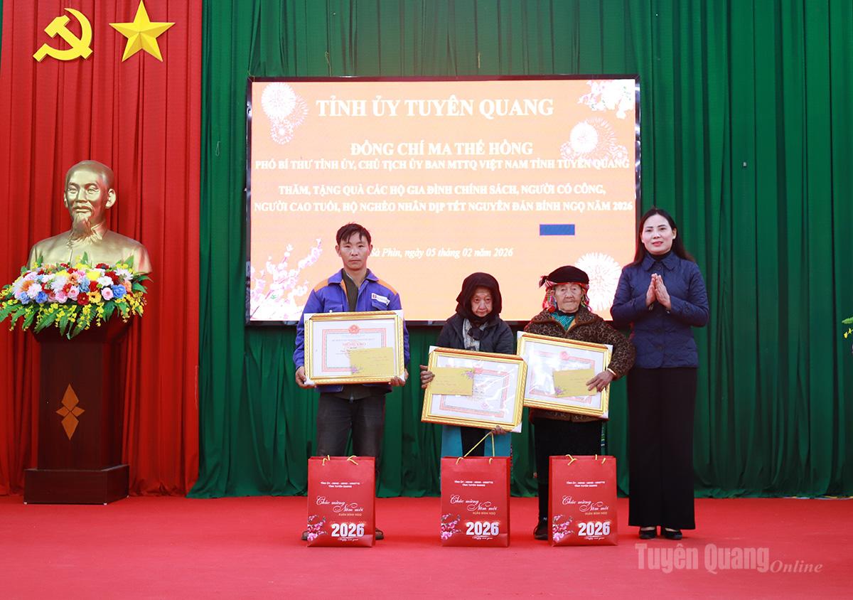 Những phần quà mang ý nghĩa được đồng chí Ma Thế Hồng, Phó Bí thư Tỉnh ủy, Chủ tịch Ủy ban MTTQ Việt Nam tỉnh và đoàn công tác trao đến người dân xã biên giới Sà Phìn thể hiện sự quan tâm, chia sẻ của cấp ủy, chính quyền và Mặt trận Tổ quốc tỉnh đối với các đối tượng chính sách, động viên bà con đón Tết vui tươi, đầm ấm.