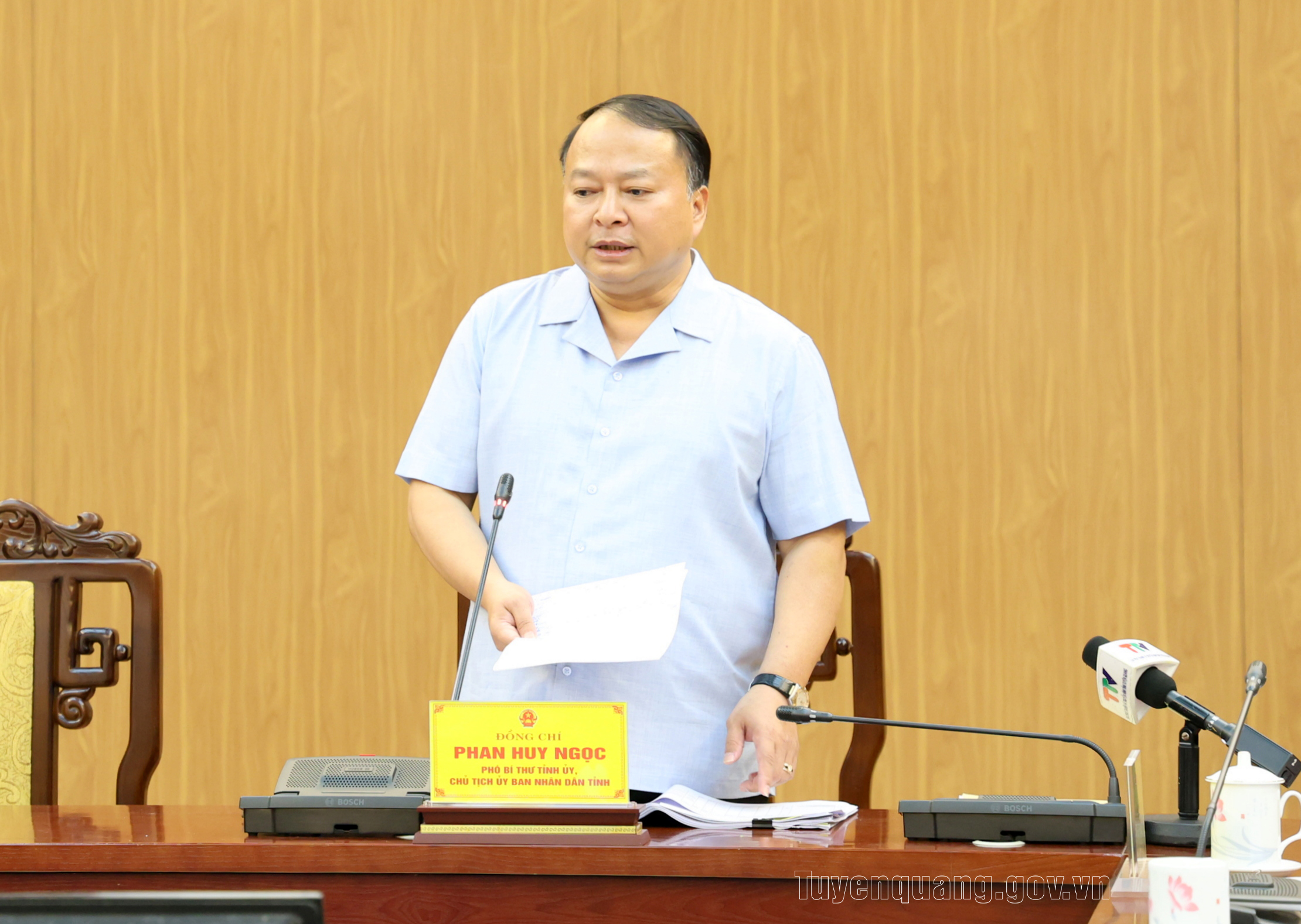 Đồng chí Chủ tịch UBND tỉnh Phan Huy Ngọc phát biểu chỉ đạo tại cuộc họp.