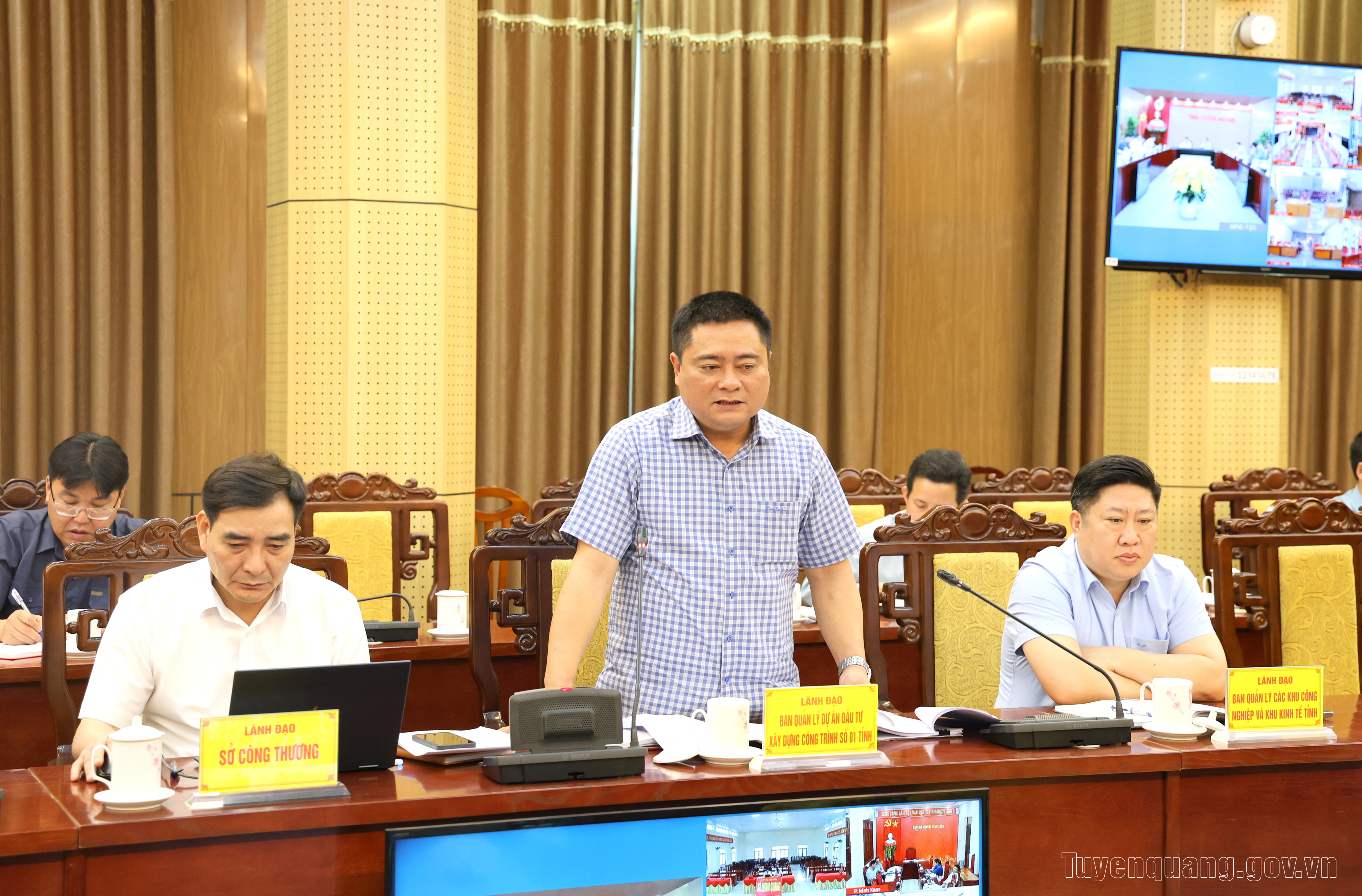 Lãnh đạo Ban Quản lý dự án đầu tư xây dựng công trình số 01 tỉnh phát biểu thảo luận tại cuộc họp.