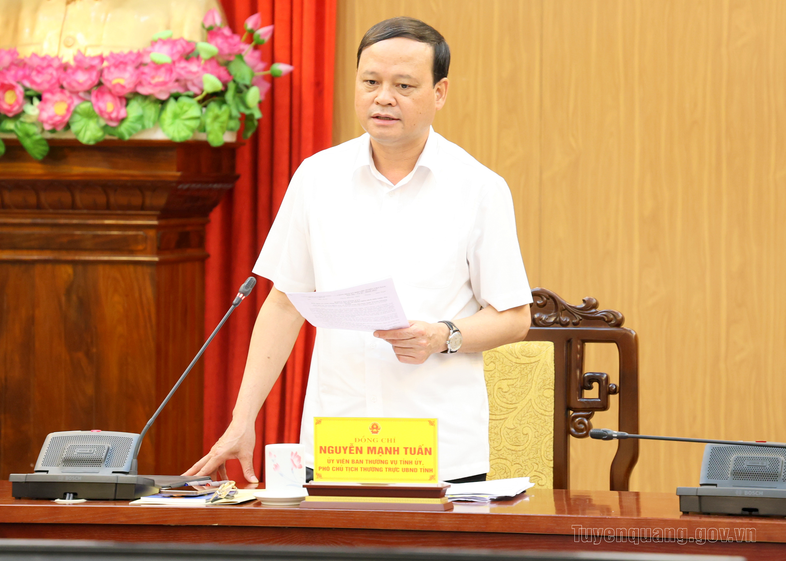 Đồng chí Phó Chủ tịch Thường trực UBND tỉnh Nguyễn Mạnh Tuấn phát biểu tại cuộc họp.